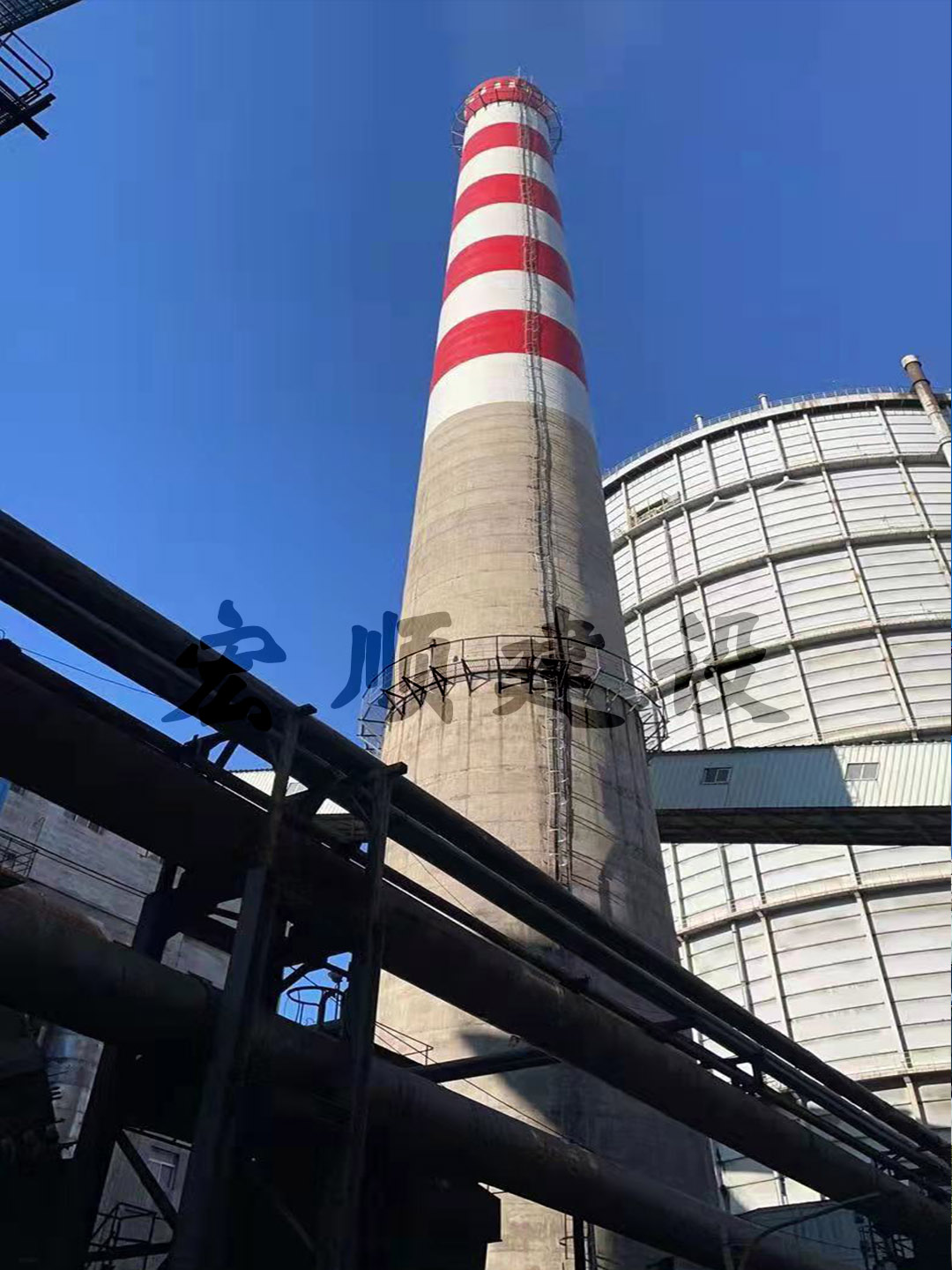 熱烈祝賀遼寧15根煙囪刷航標色環工程順利竣工